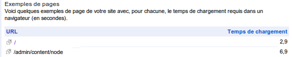 Je me suis rendu compte qu’en dessous du graphique indiquant les performances du site dans GWT, on pouvait trouver des pages d’administration du back-office : http://monsite.com/wp-admin ou http://monsite.com/admin/content/node (vous aurez reconnu WordPress et Drupal bien sûr) avec des temps de chargement parfois très élevés ce qui est normal puisque toutes les requêtes SQL sont exécutées pour ces pages : on ne renvoie pas ici une page statique générée quelques minutes auparavant…Oui, il envoie toutes ces données, page d’admin ou pas, ça n’est pas son problème et il n’en sait rien d’ailleurs, une page est une page.