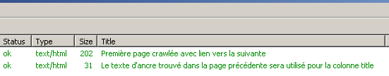 Je m’explique: Ma première page crawlée contient un lien vers la deuxième avec le texte d’ancre « Le texte d’ancre trouvé dans la page précédente sera utilisé pour la colonne title ». Ma deuxième page a une balise title avec des attributs: (<title id= »titre »>Ma page avec titre</title>.