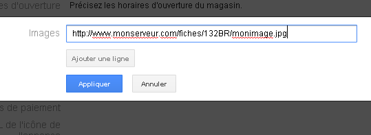 l’URL de l’image dans la deuxième colonne (uploadée sur un de vos serveurs, accessible en HTTP).